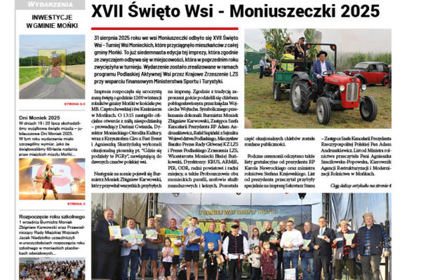 Nowe wydanie „Wieści Monieckich” już dostępne! Sprawdź, co ciekawego przygotowaliśmy w numerze 3/2025: Dni Moniek 2025 i jubileusz 60-lecia nadania praw miejskich – wielkie świętowanie z turniejami sportowymi, koncertami gwiazd Lanberry i Arka Braxtona, wydarzeniami kulturalnymi i uroczystym nadaniem nazwy Skwerowi Polonii Amerykańskiej XVII Święto Wsi – Moniuszeczki 2025 – Turniej Wsi Monieckich z emocjonującymi konkurencjami, występami kapel ludowych i zespołów disco…