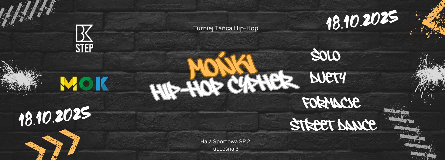 Uliczny styl zawita do Moniek by rozgrzać parkiet na hali sportowej w SP2 przy ulicy Leśnej 3. To właśnie tam 18 października będzie można zobaczyć wspaniałe bitwy tancerzy. Pojedynki 1vs1, starty duetów czy formacji tanecznych. Liczne kategorie wiekowe z podziałem na poziom zaawansowania debiuty i medium. Doskonali sędziowie : Ewulin, Kasia Wiatrowska i Jędras wybiorą w zmaganiach tanecznych najlepszych ogarniaczy cypheru czyli tanecznego kręgu.