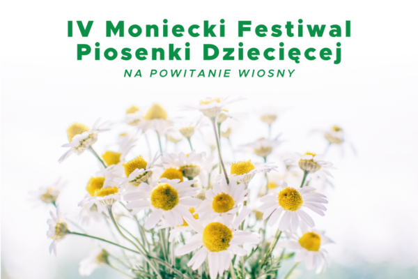 Moniecki Ośrodek Kultury zaprasza dzieci w wieku przedszkolnym i szkoły podstawowej do udziału w IV Monieckim Konkursie Piosenki Dziecięcej Na powitanie wiosny. W związku z ograniczeniami związanymi z pandemią COVID-19 postanowiliśmy zmienić formułę festiwalu na przesłuchania konkursowe. Konkurs odbędzie się on-line. Festiwal ma charakter przeglądu, gdzie najważniejsza jest radość muzykowania i możliwość autoprezentacji, dlatego każde dziecko wygrywa!!! Należy przygotować jedną piosenkę…