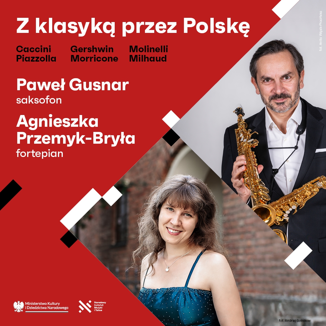 Na scenie wystąpią wybitni muzycy – Paweł Gusnar (saksofon) oraz Agnieszka Przemyk-Bryła (fortepian). Paweł Gusnar to profesor Uniwersytetu Muzycznego Fryderyka Chopina, zdobywca sześciu nagród Fryderyk, laureat Złotych Dyplomów Muzyczne Orły 2023 i 2024 oraz założyciel i dyrygent Warsaw Saxophone Orchestra. W swoim dorobku posiada ponad 70 płyt CD, w tym blisko 20 autorskich i współautorskich.